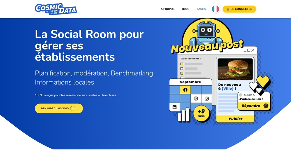Pensée pour les équipes centrales et locales, Cosmic Data vous aide à optimiser votre visibilitéengager vos audiences, et maîtriser votre image de marque à tous les niveaux : local, national et global.